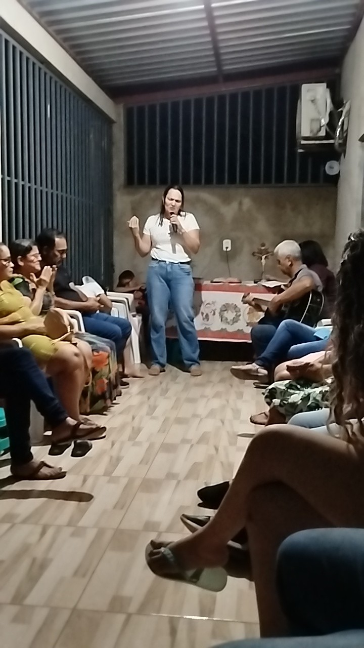 O encontro aconteceu na residência da moradora Alessandra Guilhermino, localizada no bairro Aeroporto, e foi marcado por um clima de profunda espiritualidade, união e oração.
