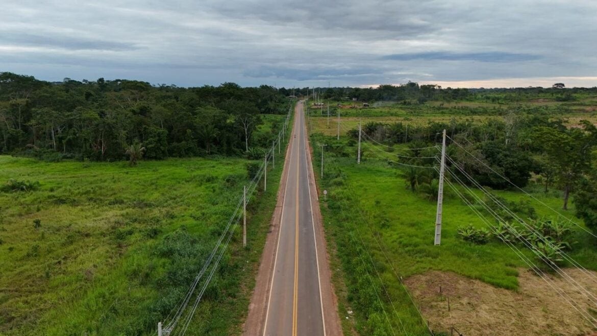 Trecho recuperado da Rodovia AC-90, com nova pavimentação, sinalização moderna e melhorias estruturais, fruto do investimento de R$ 14 milhões/Foto: Rafael Dias Deracre